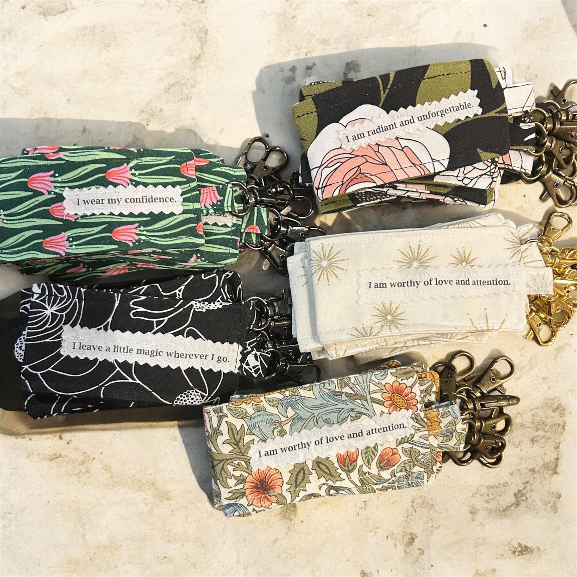 Our On-the-Go Perfume Holder is designed to keep your roller perfume secure, protected, and always within reach. With a sturdy clip and snug fabric sleeve, it easily attaches to your purse, keychain, diaper bag, or travel tote — because confidence shouldn’t stay at home.